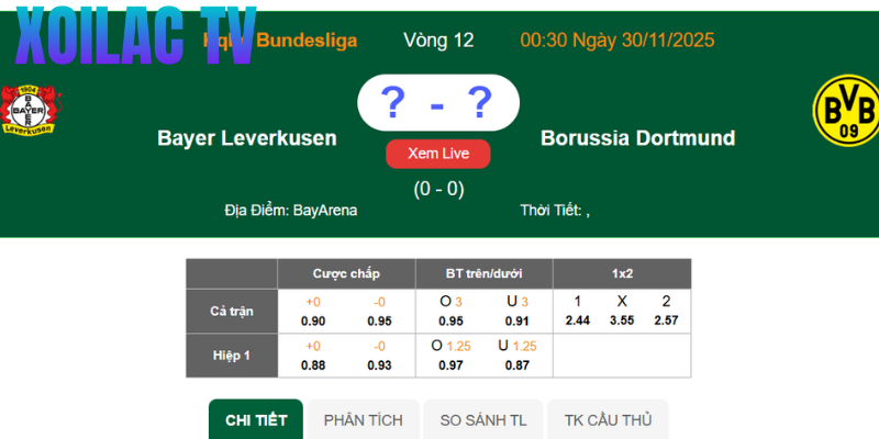 Trận đấu giữa Bayer Leverkusen vs Borussia Dortmund vào lúc 00:30 ngày 30/11 được xoilac đánh giá là cơ hội để chủ nhà khẳng định sức mạnh thực sự. Với phong độ cao và tinh thần hưng phấn, Leverkusen được dự đoán sẽ vượt qua Dortmund để tiếp tục bay cao trên bảng xếp hạng.